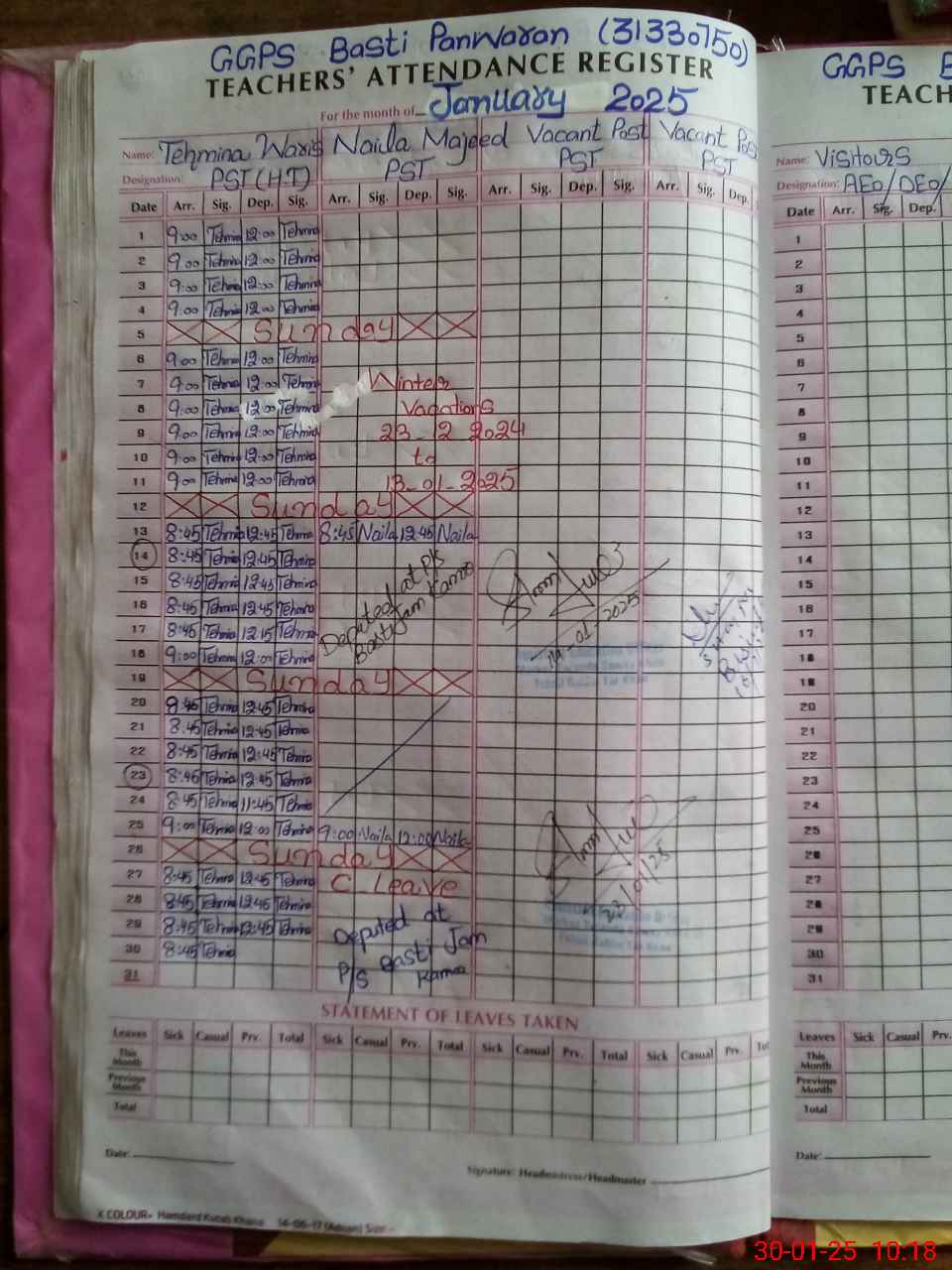 | School Visited by School Health & Nutrition Supervisor (No. of Visits) | Name1: | Shaista Javed | Name2: | Nil | |