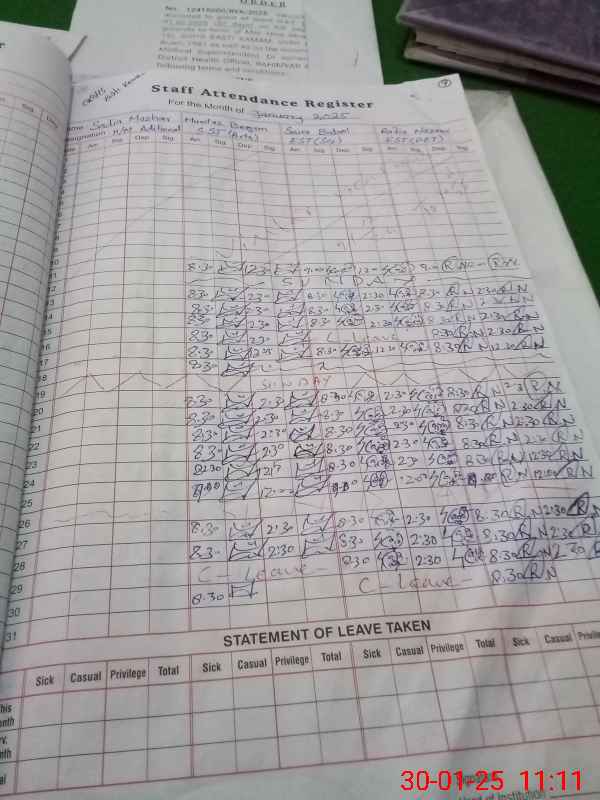 | Remarks (Use Separate Page if Required): H T attendance filled but physically absent | |||||