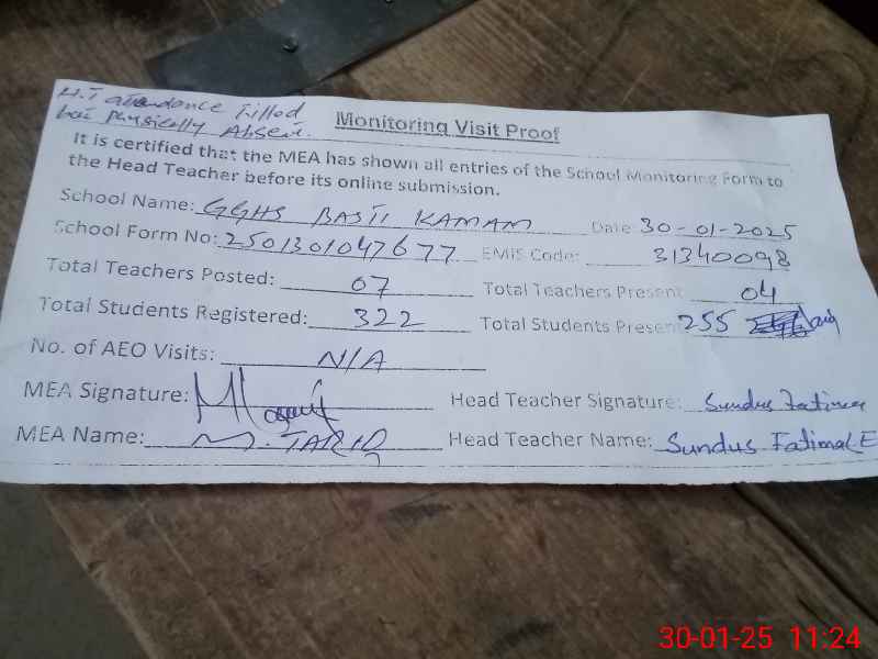 | EMIS Code: 31340098 | Name of School: GGHS BASTI KAMAM | |||