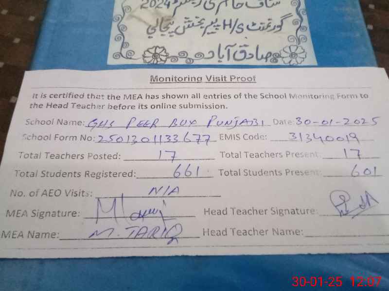 | EMIS Code: 31340019 | Name of School: GHS PEER BUKHSH PUNJABI | |||