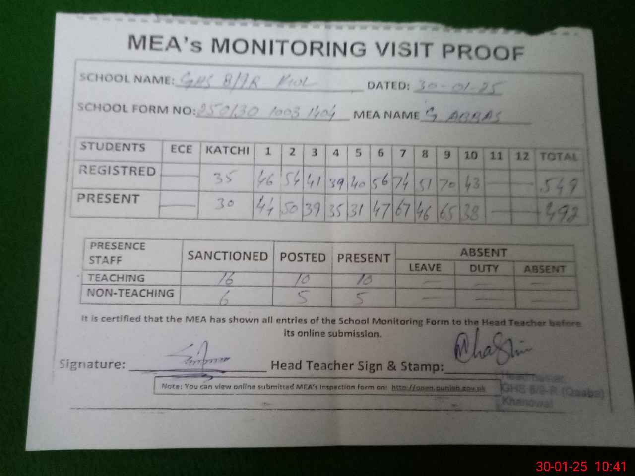 | EMIS Code: 36420252 | Name of School: GHS 8/9-R, KACHA KHUH | |||