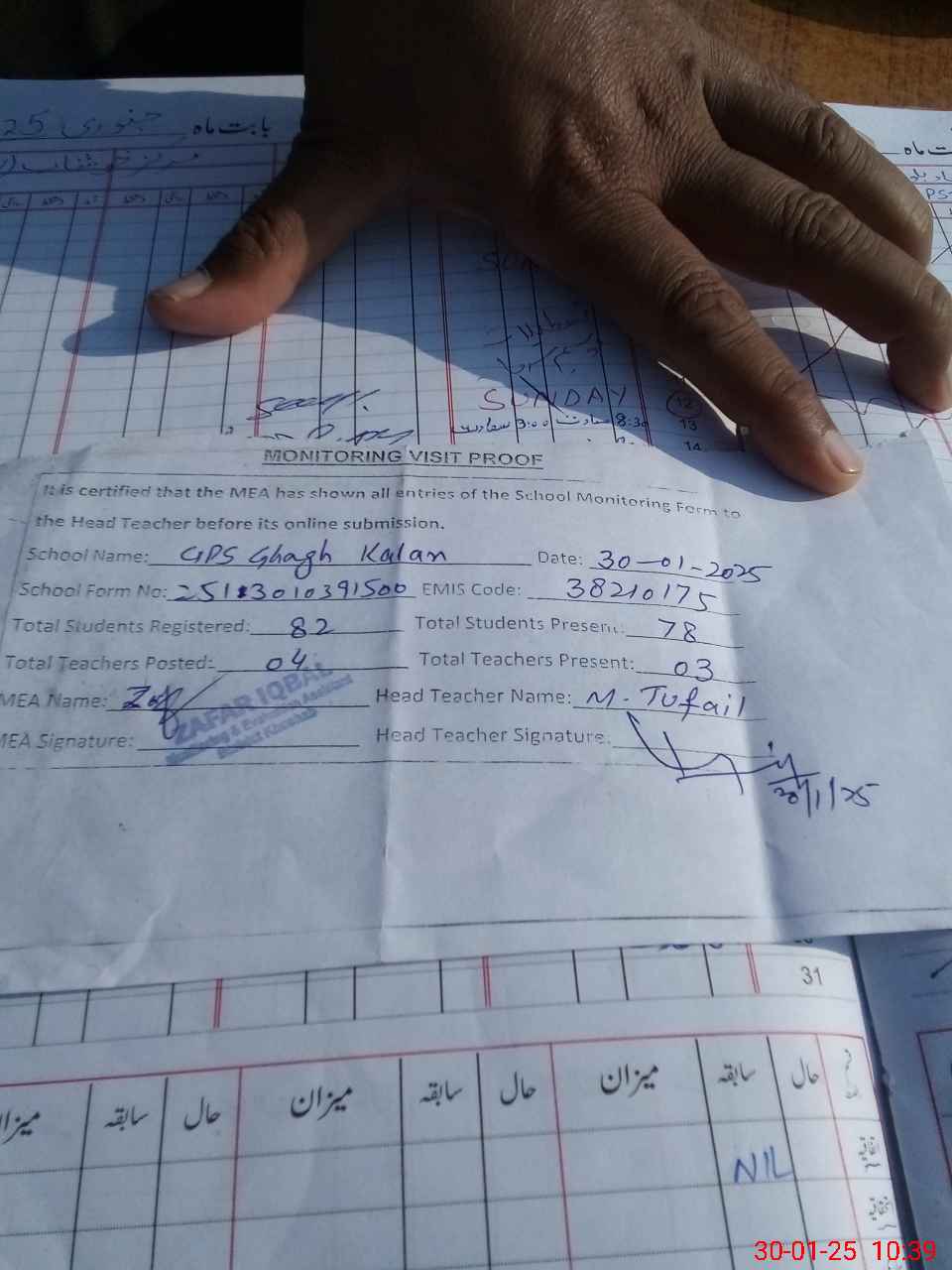 | Attendance Register | Head Teacher | MEA with School | Visit Proof |