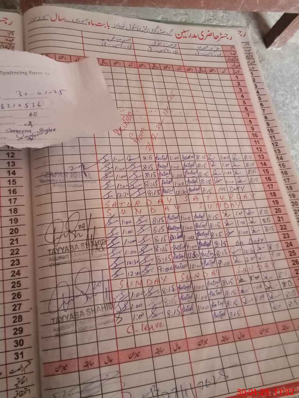 | CNIC | Full Name | Designation | R/C | Absence During Last Calender Month |