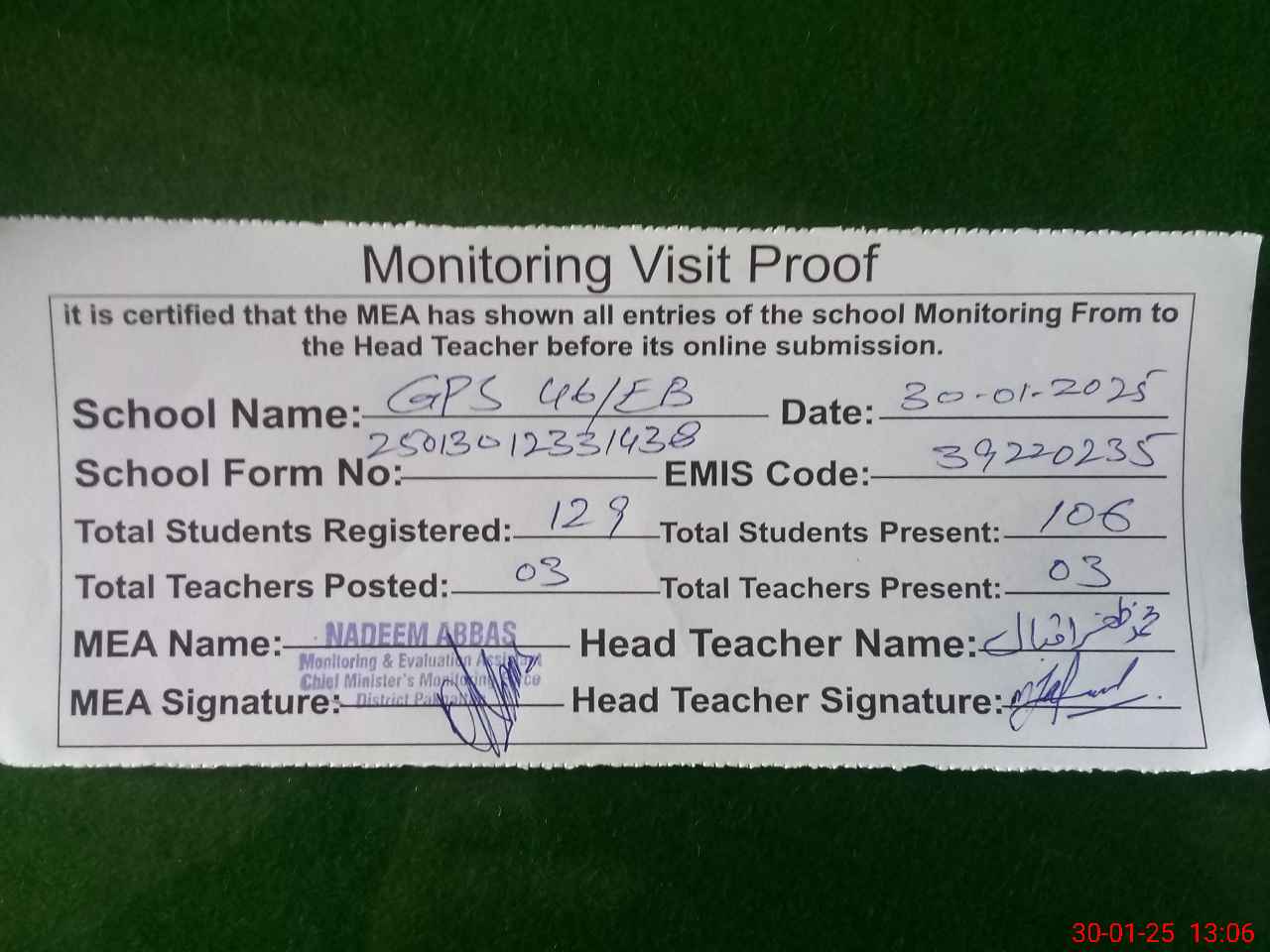 | EMIS Code: 39220235 | Name of School: GPS 46 EB | |||