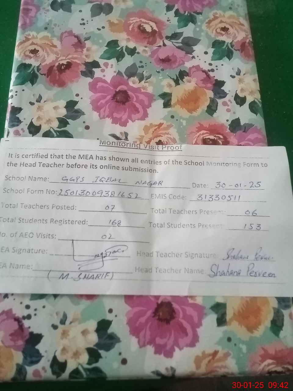 | EMIS Code: 31330511 | Name of School: GGPS IQBAL NAGAR | |||