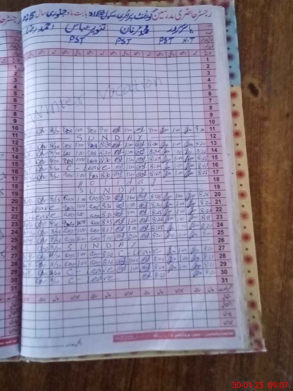 | CNIC | Full Name | Designation | R/C | Absence During Last Calender Month |