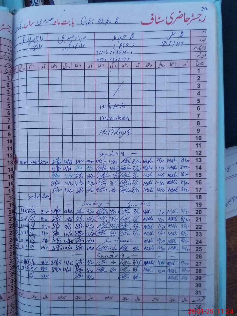 | Name: MU**** AL**** Designation: (School Headmaster's/Headmistress's) PST Phone/Cell Number: 03**** |