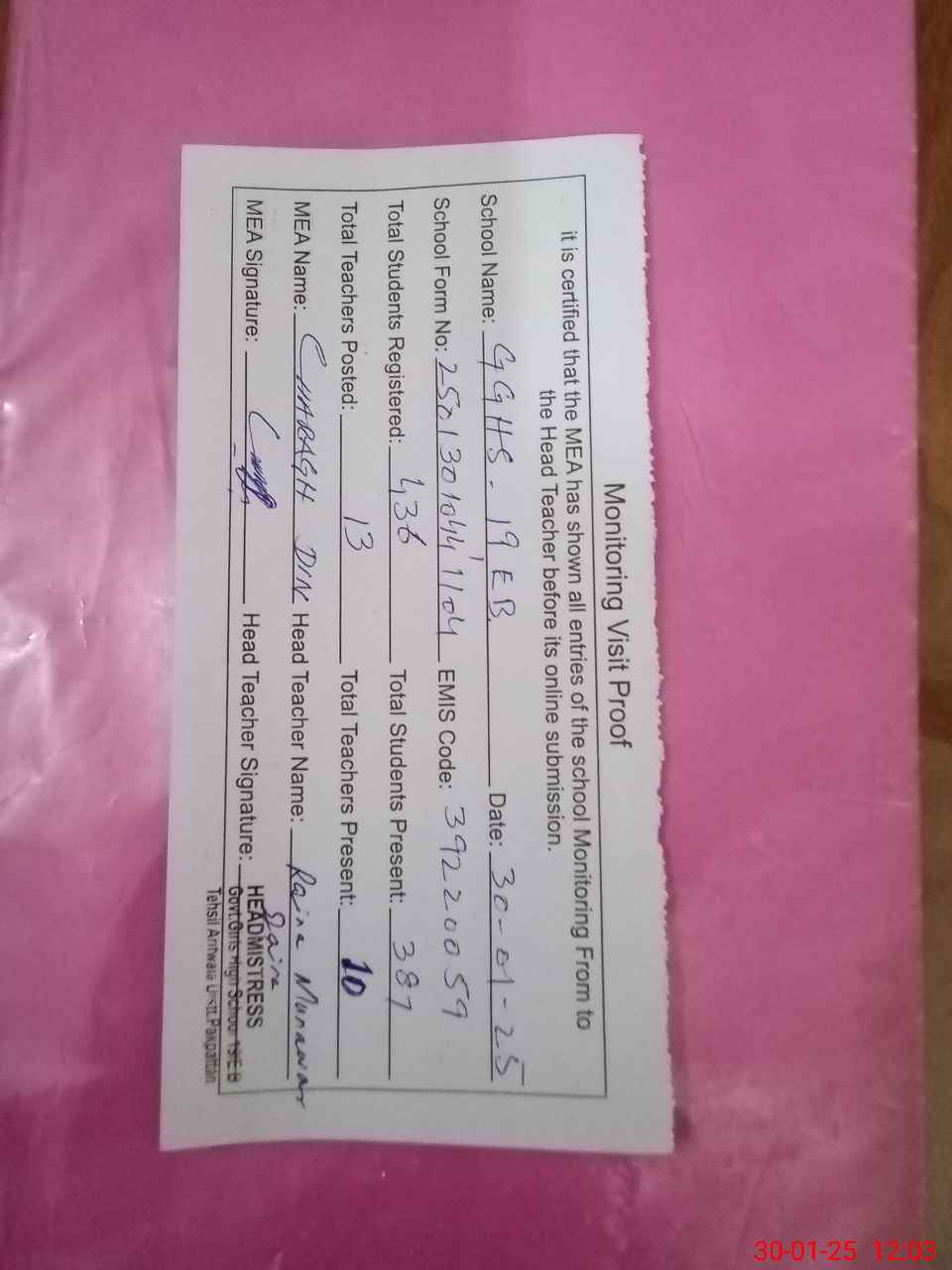 | EMIS Code: 39220059 | Name of School: GGHS 19 EB | |||