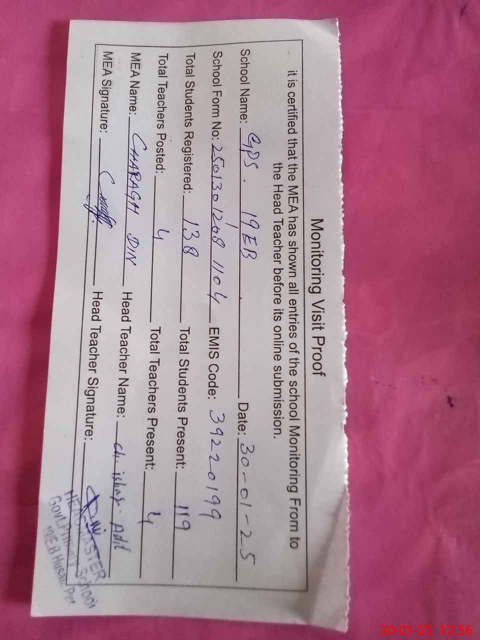 | EMIS Code: 39220199 | Name of School: GPS 19 EB HUSSAIN PUR | |||