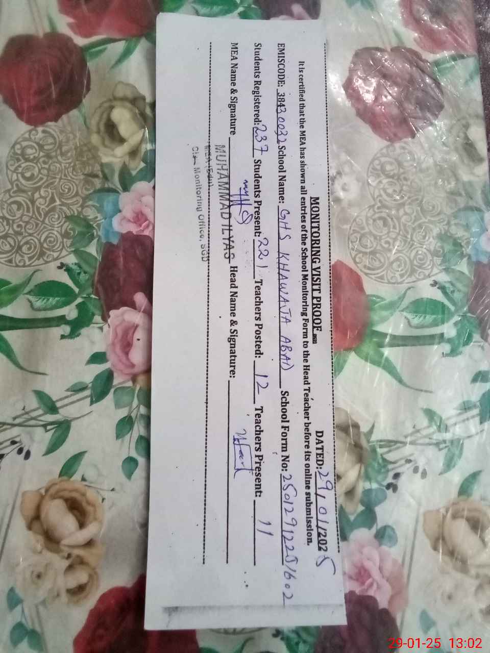 | EMIS Code: 38430032 | Name of School: GHS KHAWAJA ABAD | |||