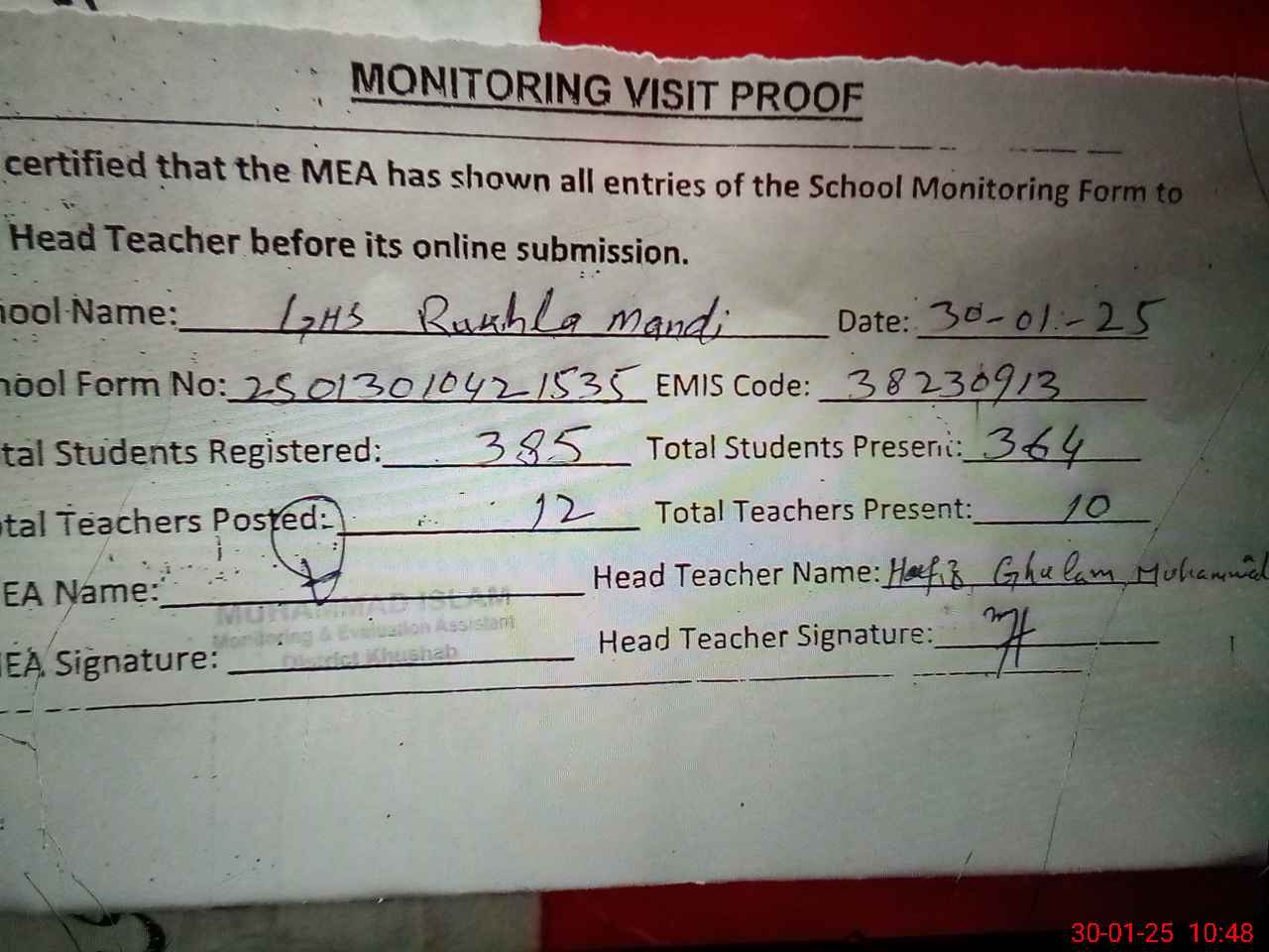 | EMIS Code: 38230913 | Name of School: GHS RUKHLA MANDI | |||