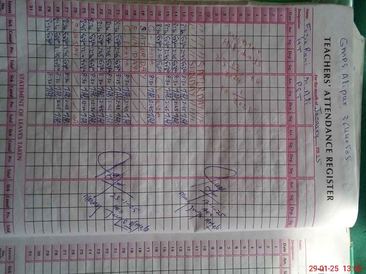 | Name: FO**** RA**** Designation: (School Headmaster's/Headmistress's) PST Phone/Cell Number: 03**** |