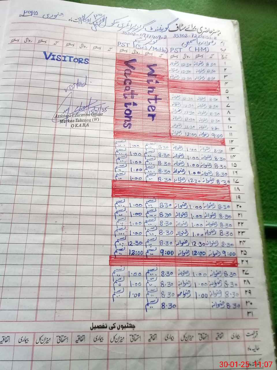 | Name: RI**** YA**** Designation: (School Headmaster's/Headmistress's) PST Phone/Cell Number: 03**** |