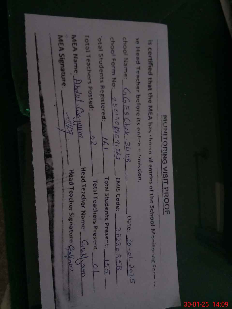 | EMIS Code: 38230558 | Name of School: GGES CHAK NO.34 DB | |||