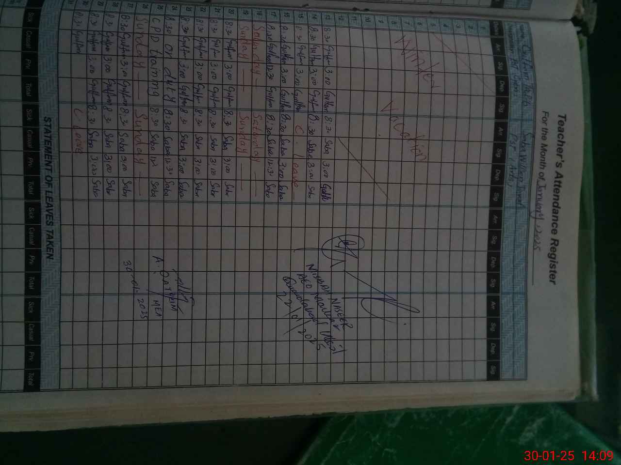 | No. of Students Present - Male | 0 | 0 | 0 | 0 | 0 | 0 | 0 | 0 | 0 | 0 | 0 | 0 | ||||