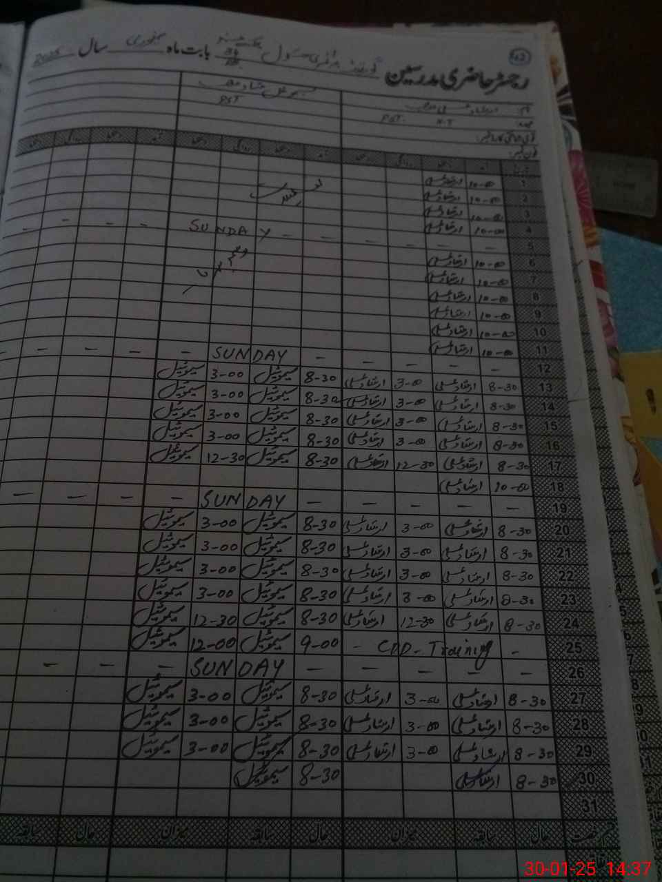 | CNIC | Full Name | Designation | R/C | Absence During Last Calender Month |
