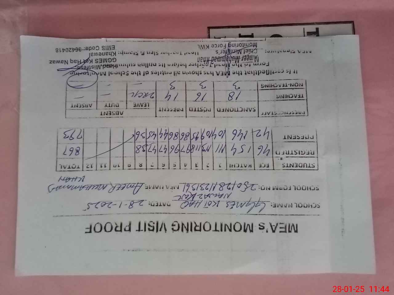 | EMIS Code: 36420418 | Name of School: GGMES KOT HAQ NAWAZ, OLD KHANEWAL | |||