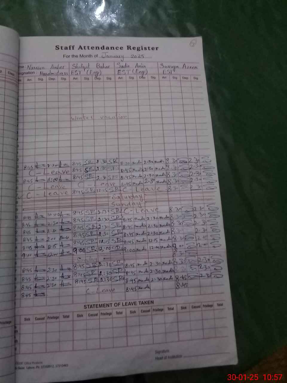 | Leave | Duty | Absent | Maternity | Medical | Ex- Pak |