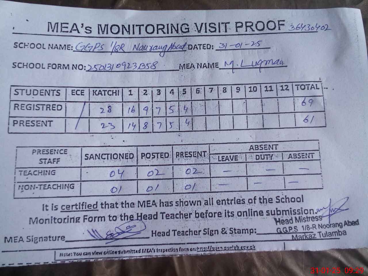 | EMIS Code: 36430402 | Name of School: GGPS 1/8-R NAURANG ABAD, TULAMBA | |||