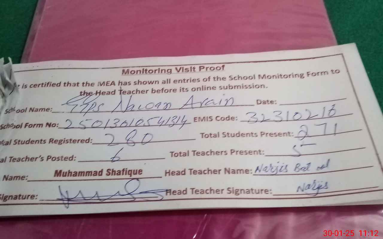 | EMIS Code: 32310216 | Name of School: GGPS NAWAN ARAIN | |||