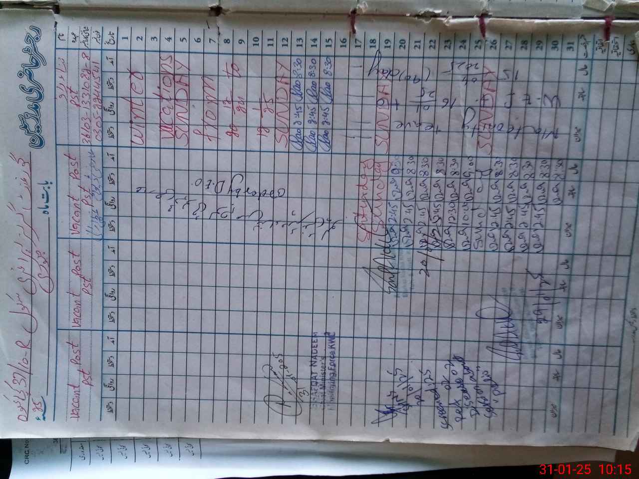 | CNIC | Full Name | Designation | R/C | Absence During Last Calender Month |
