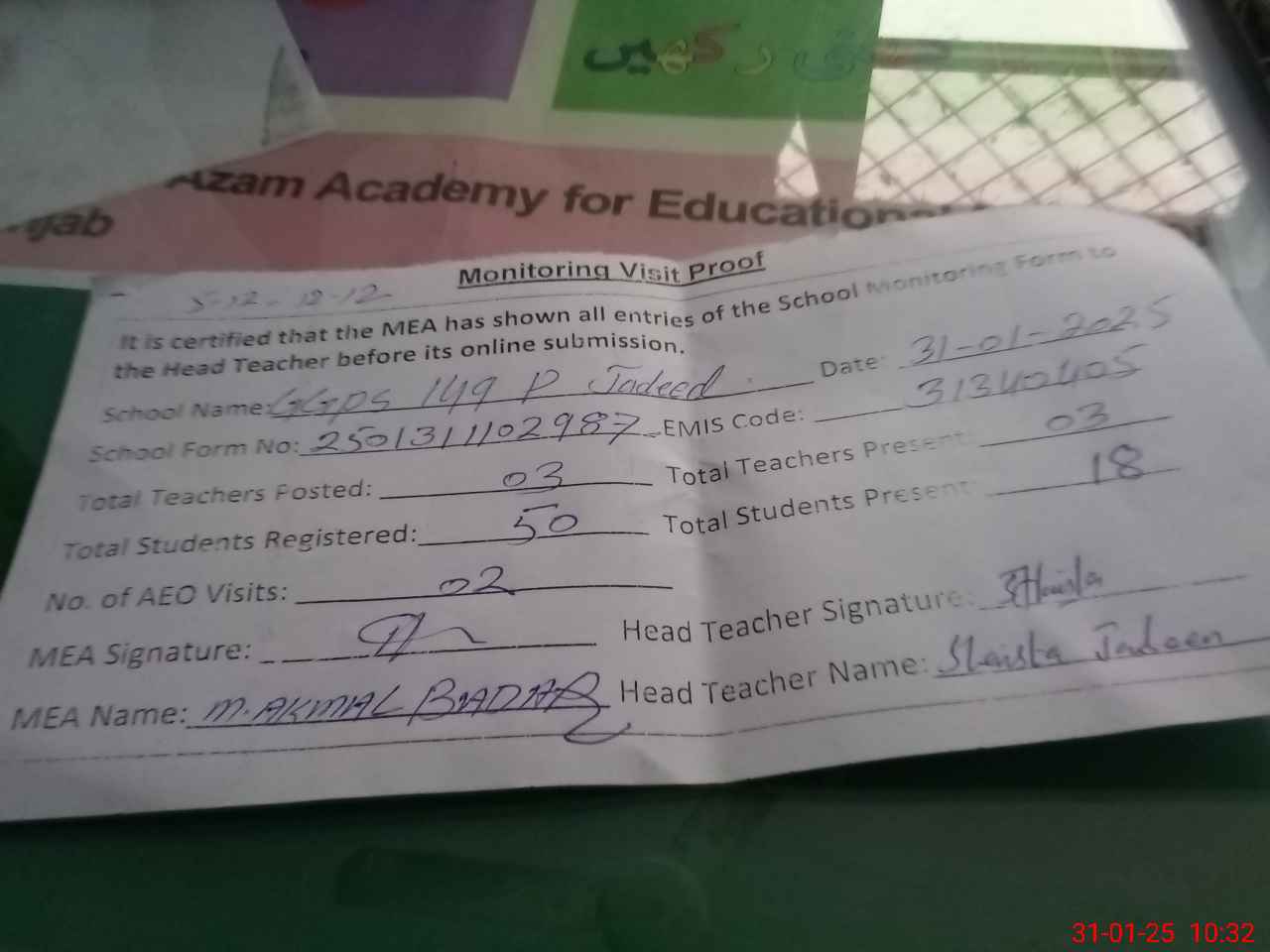 | EMIS Code: 31340405 | Name of School: GGPS 149/P JADEED SADIQABAD | |||