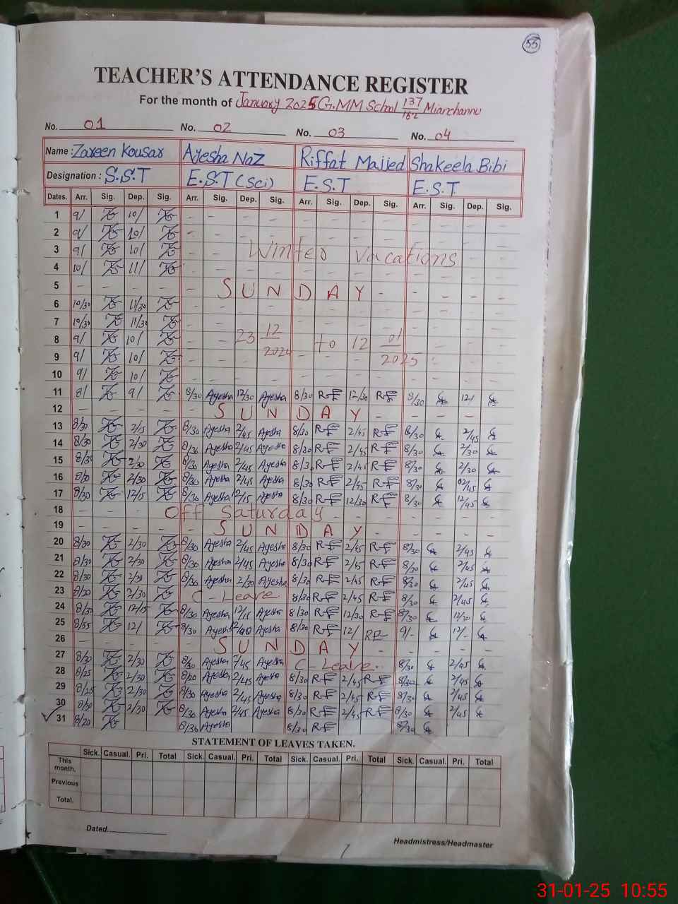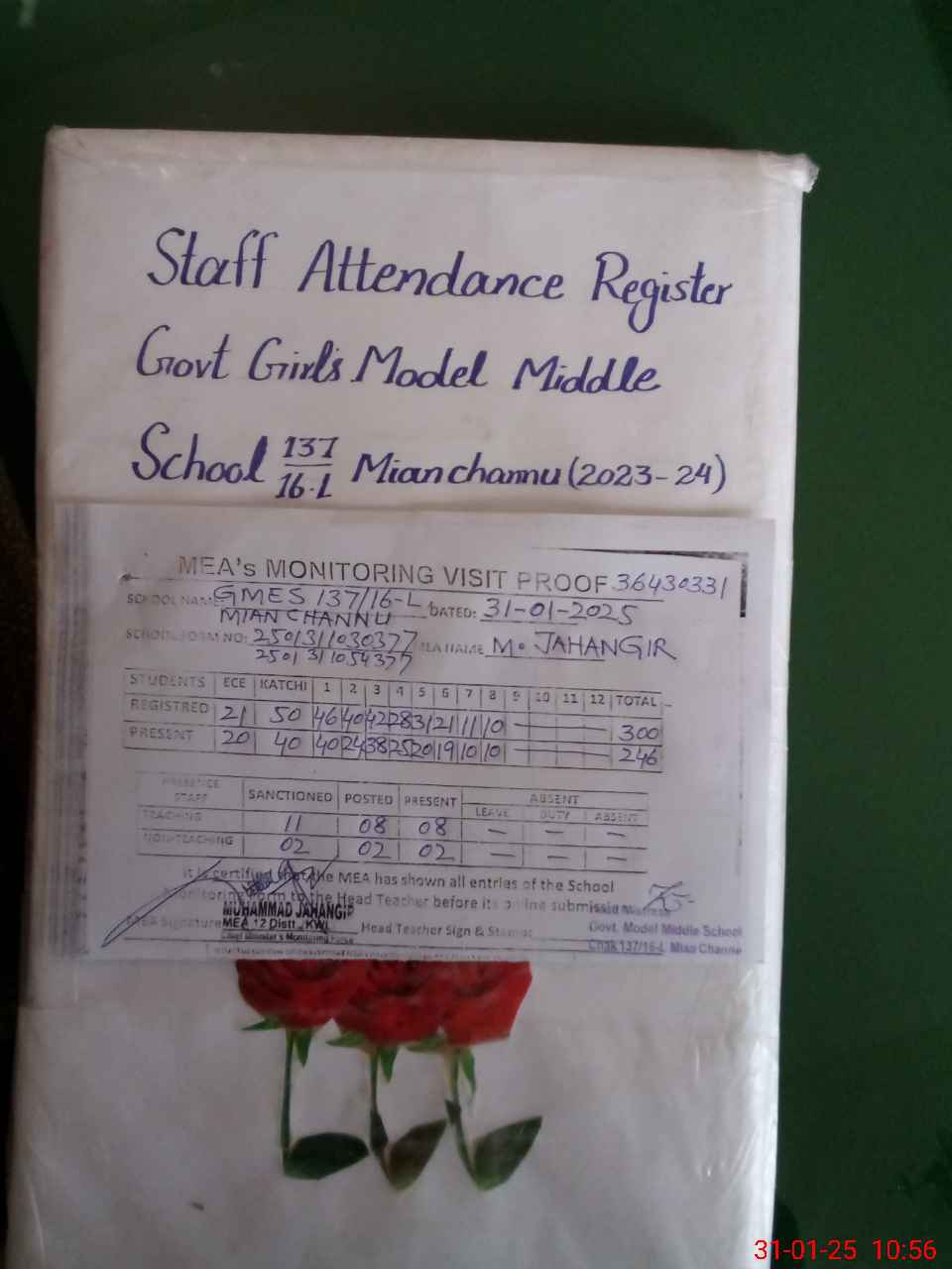 | Attendance Register | Head Teacher | MEA with School | Visit Proof |