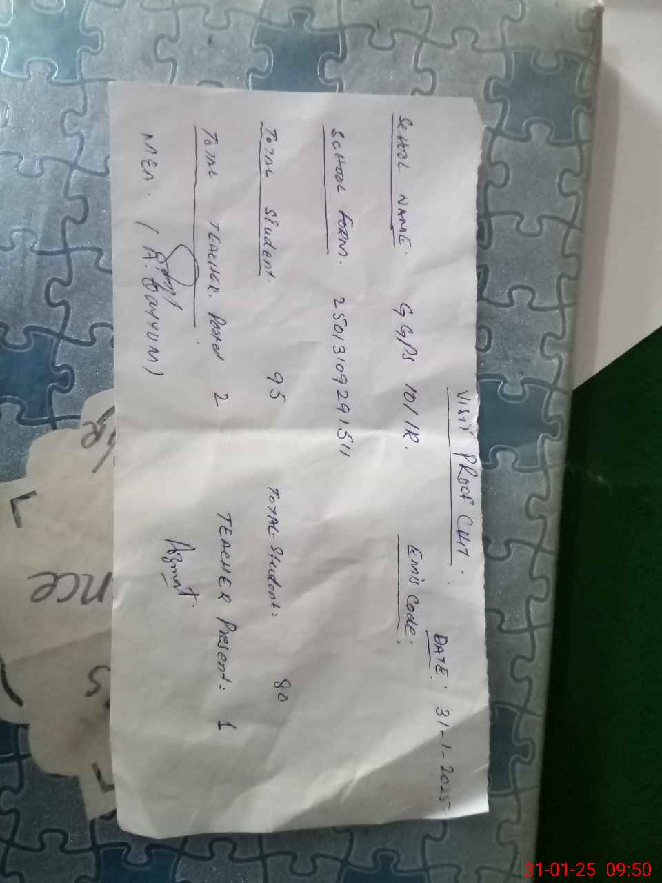 | Attendance Register | Head Teacher | MEA with School | Visit Proof |