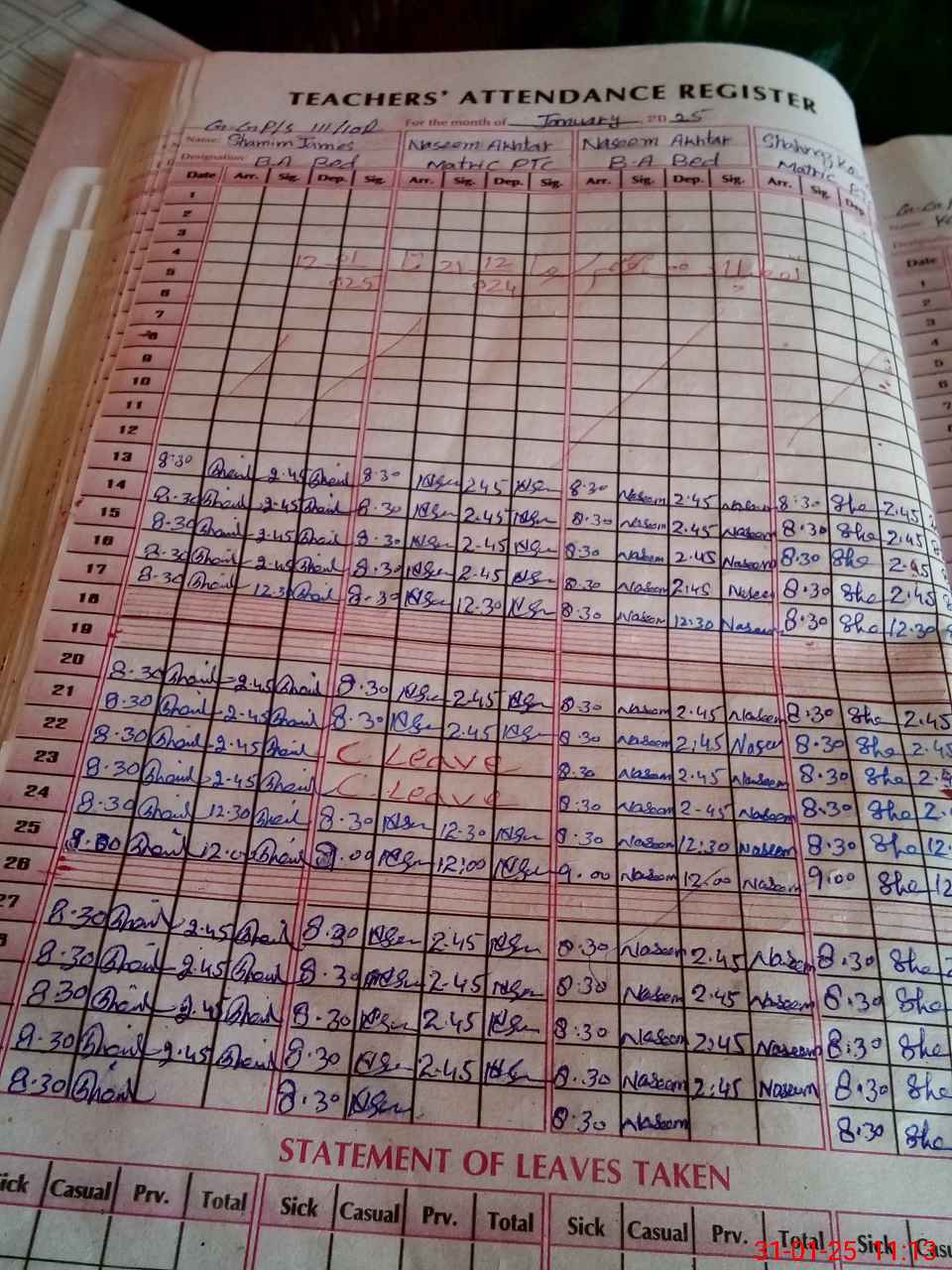 | CNIC | Full Name | Designation | R/C | Absence During Last Calender Month |