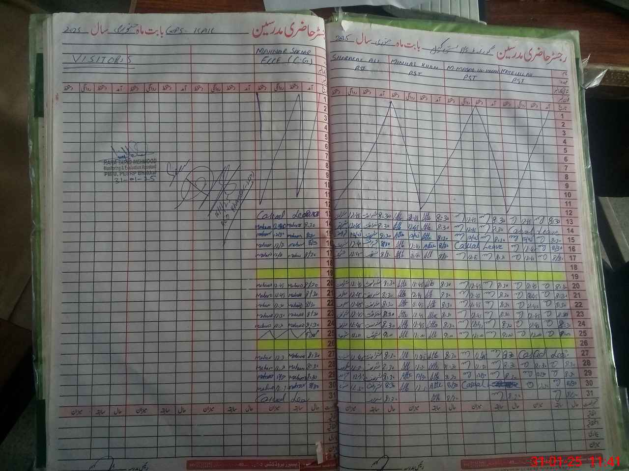 | CNIC | Full Name | Designation | R/C | Absence During Last Calender Month |