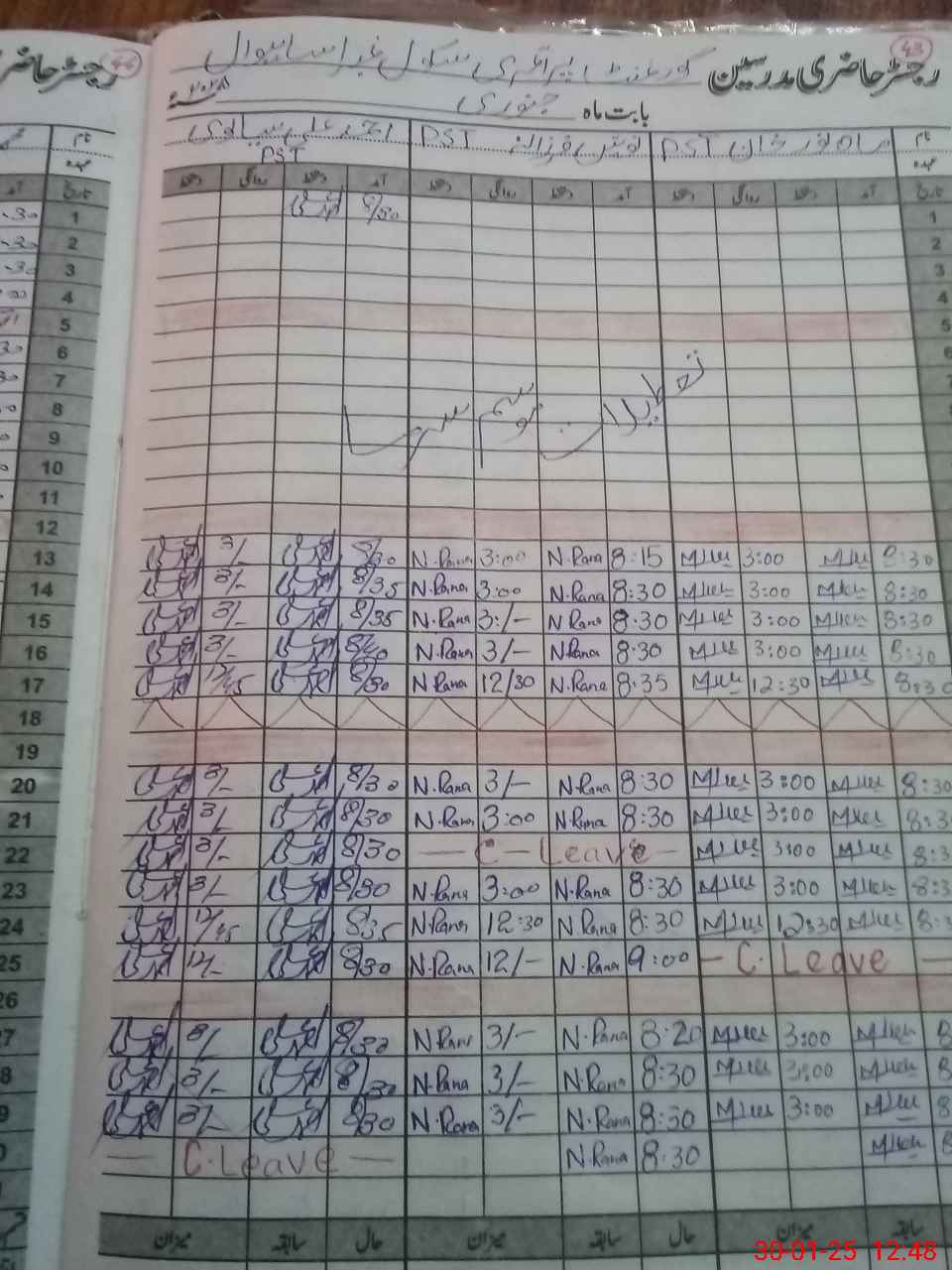 | CNIC | Full Name | Designation | R/C | Absence During Last Calender Month |