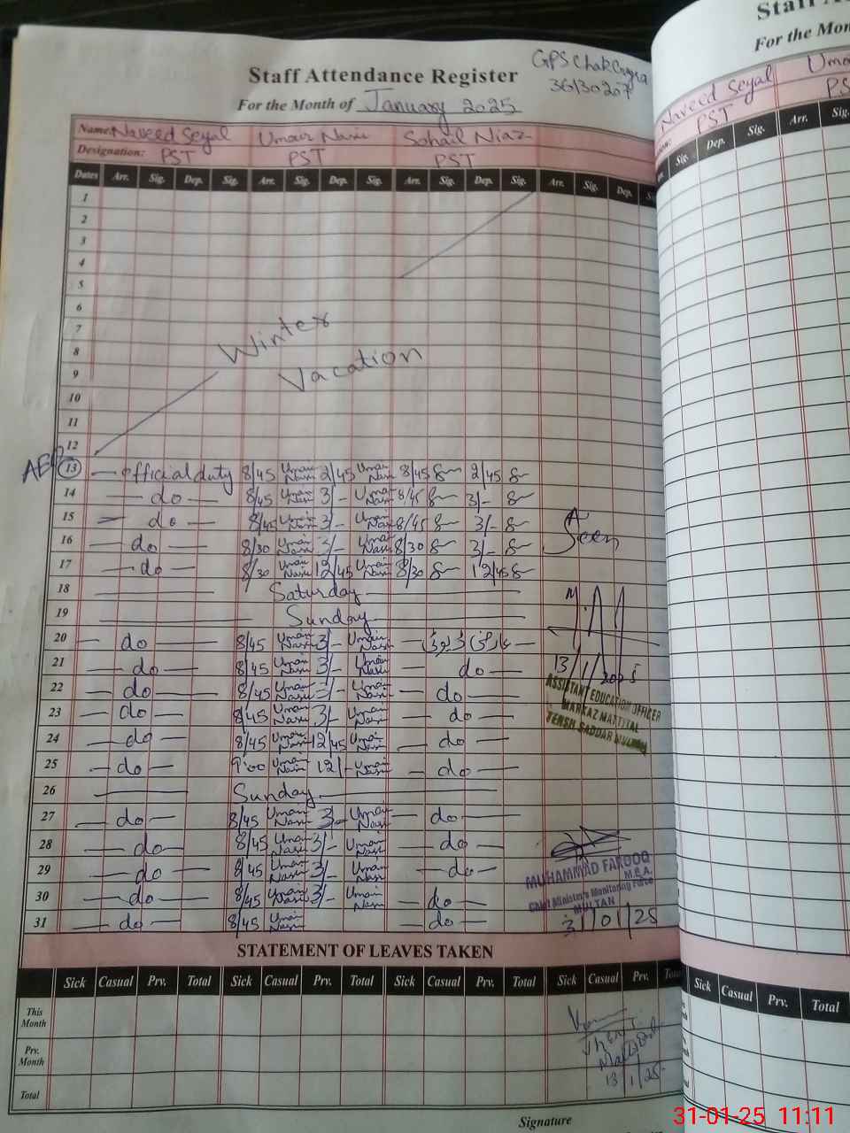 | Name: Na**** Sa**** Designation: (School Headmaster's/Headmistress's) PST Phone/Cell Number: 03**** |