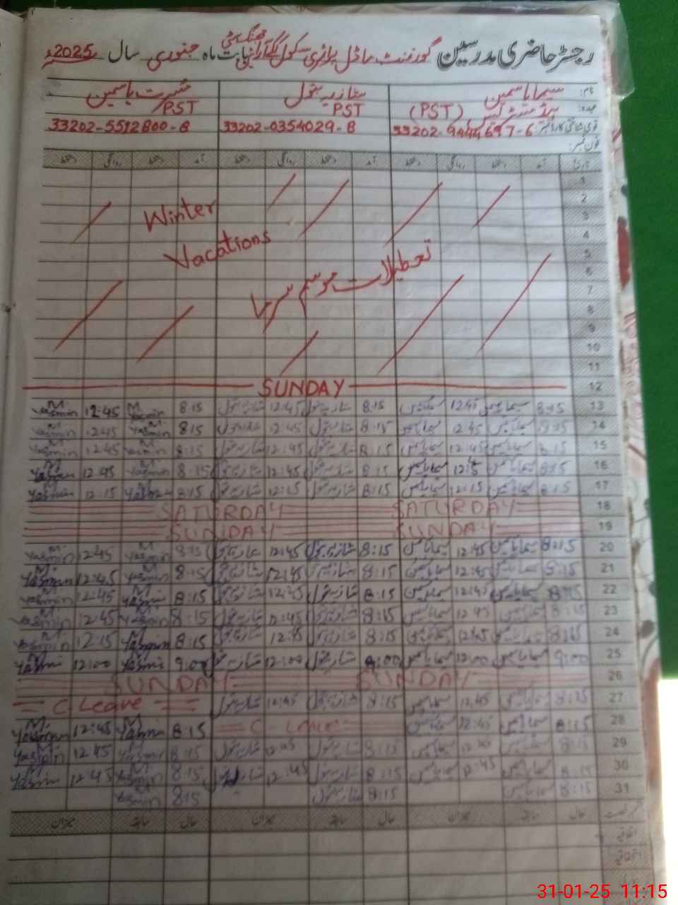 | Name: Se**** Ya**** Designation: (School Headmaster's/Headmistress's) PST Phone/Cell Number: 03**** |