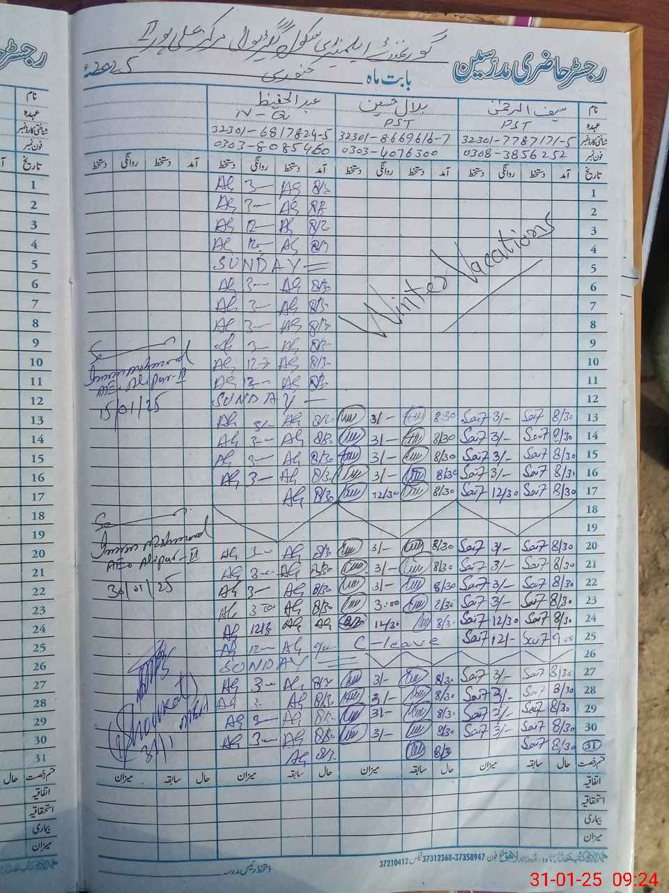 | CNIC | Full Name | Designation | R/C | Absence During Last Calender Month |