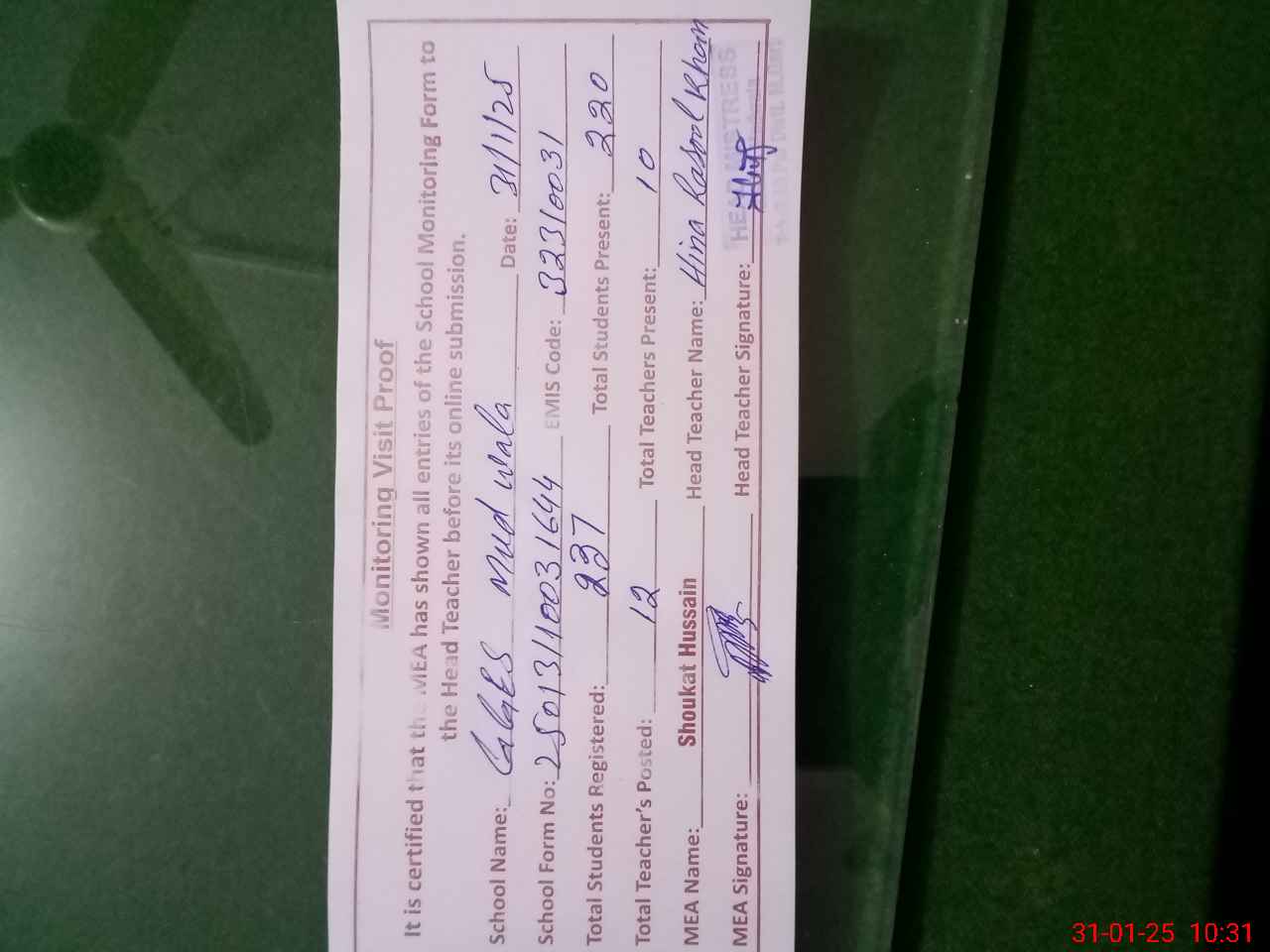| EMIS Code: 32310031 | Name of School: GGES MUD WALA | |||