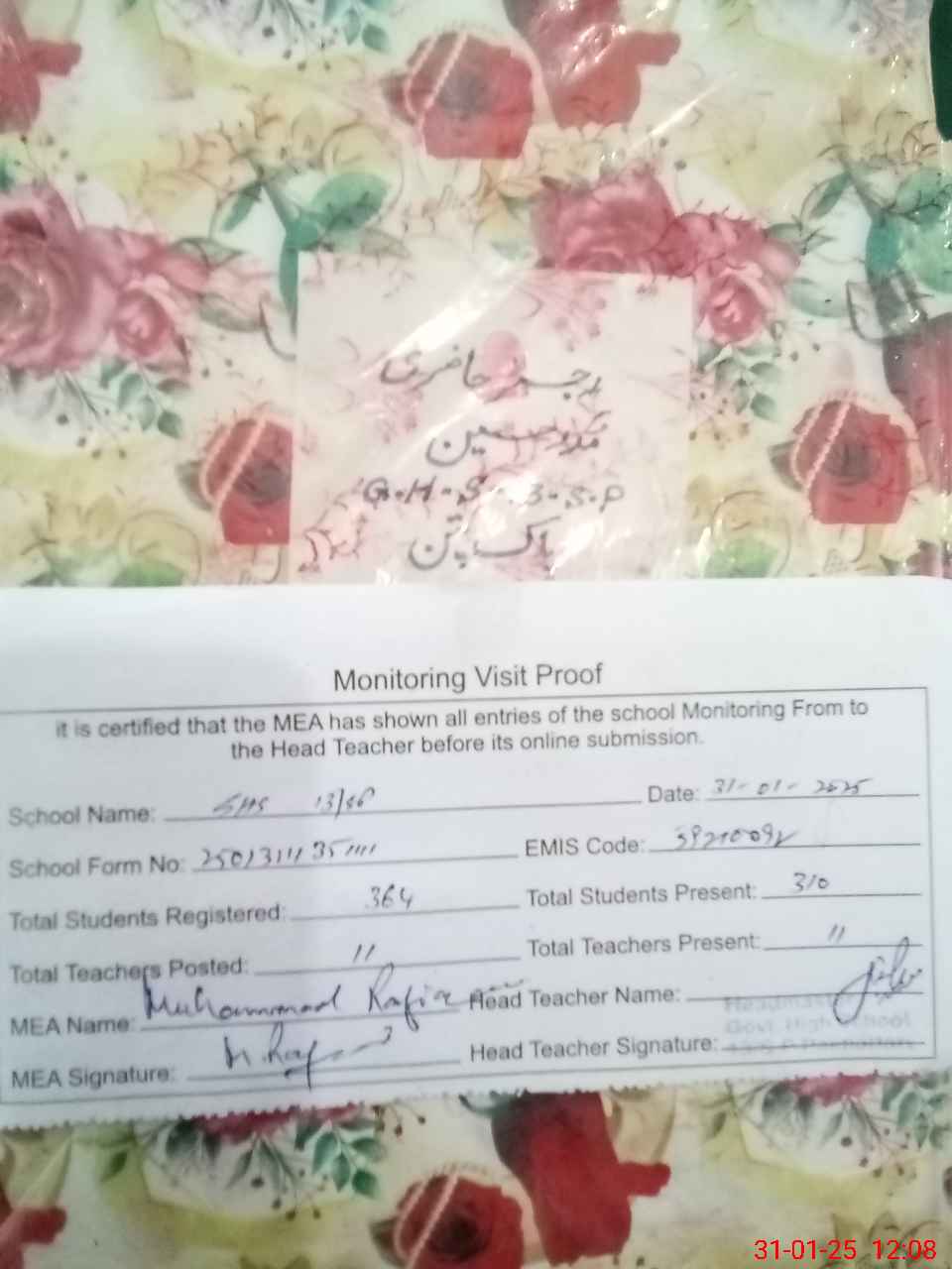 | EMIS Code: 39210092 | Name of School: GHS 13/SP P.O PAKPATTAN | |||