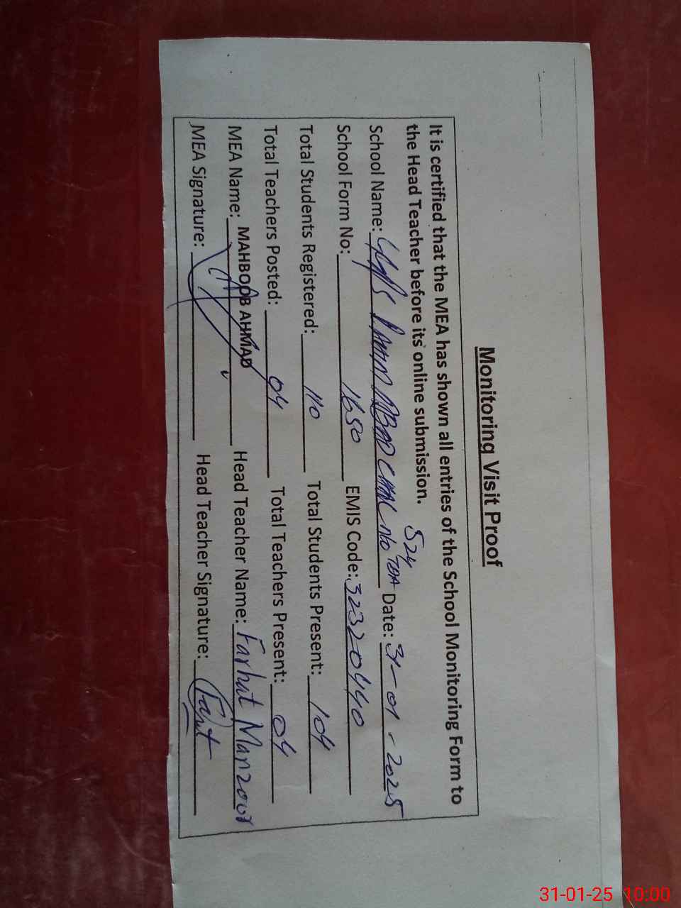 | Certified that this School was Inspected by the Undersigned MEA/DMO Today and the Information Stated Above is as Per Record. | |||||