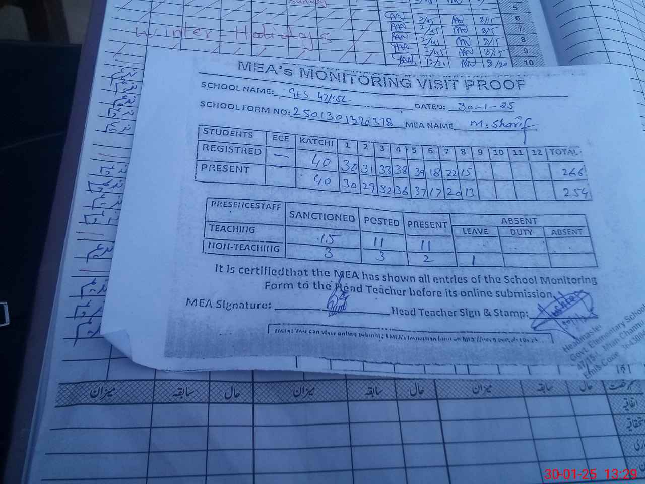 | EMIS Code: 36430046 | Name of School: GES 47/15-L, P/O 124/15-L, MIAN CHANNU | |||