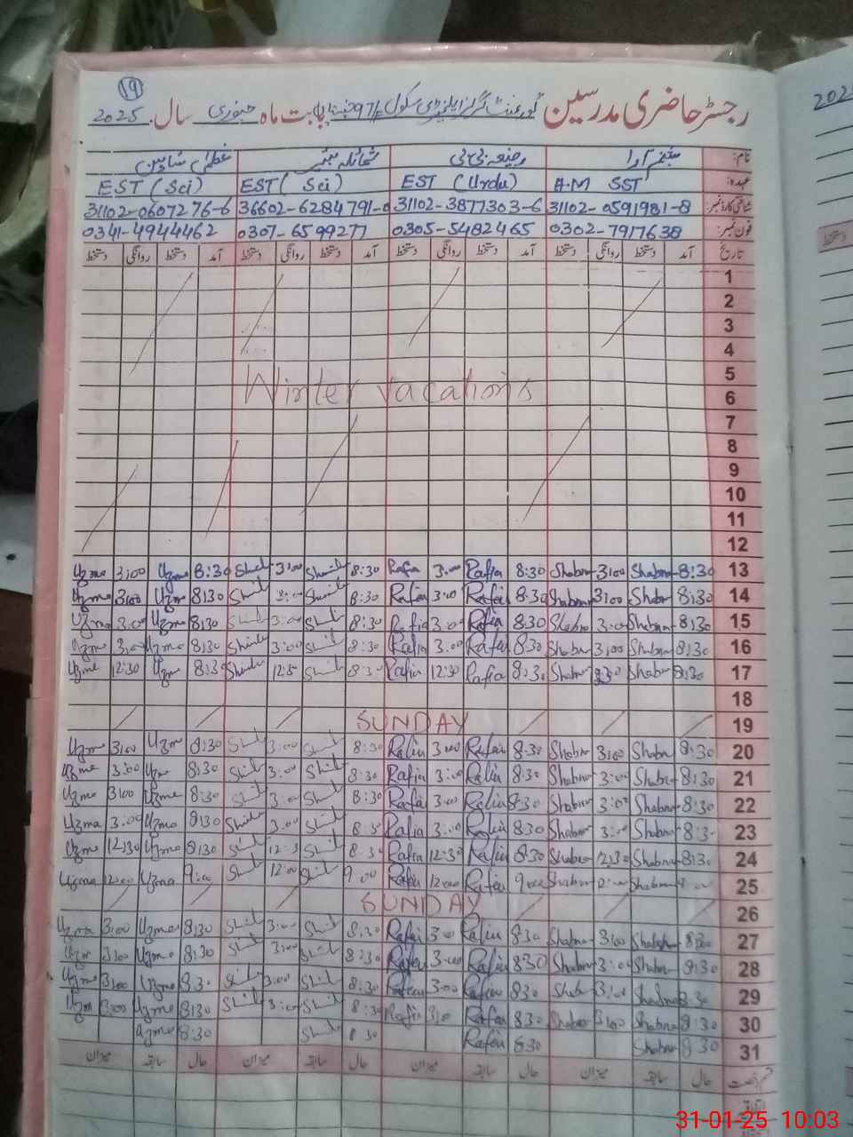 | Name: SH**** AR**** Designation: (School Headmaster's/Headmistress's) S.S.T.(art) Phone/Cell Number: 03**** |
