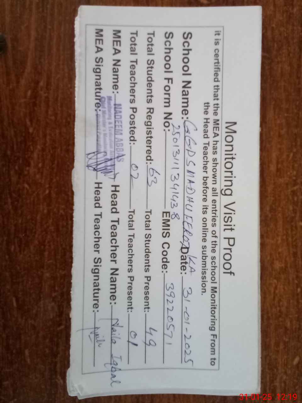 | EMIS Code: 39220571 | Name of School: GGPS MADHU FEROZ KA | |||