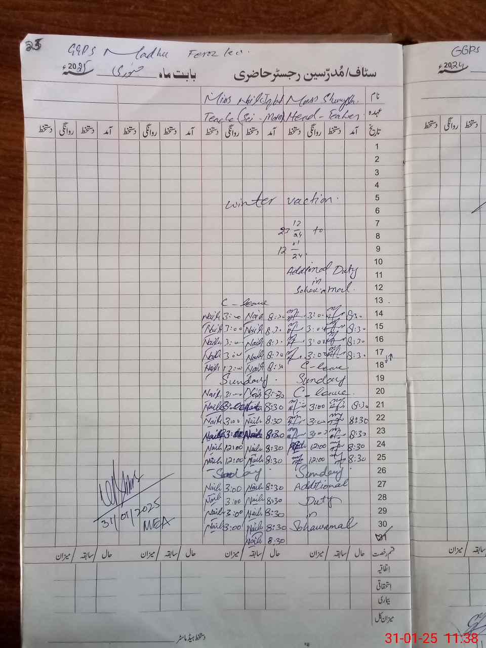 | Name: SH**** AN**** Designation: (School Headmaster's/Headmistress's) PST Phone/Cell Number: 03**** |