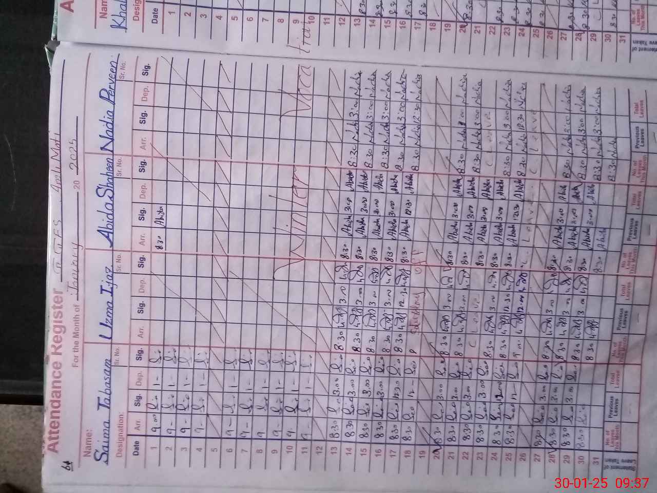 | CNIC | Full Name | Designation | R/C | Absence During Last Calender Month |