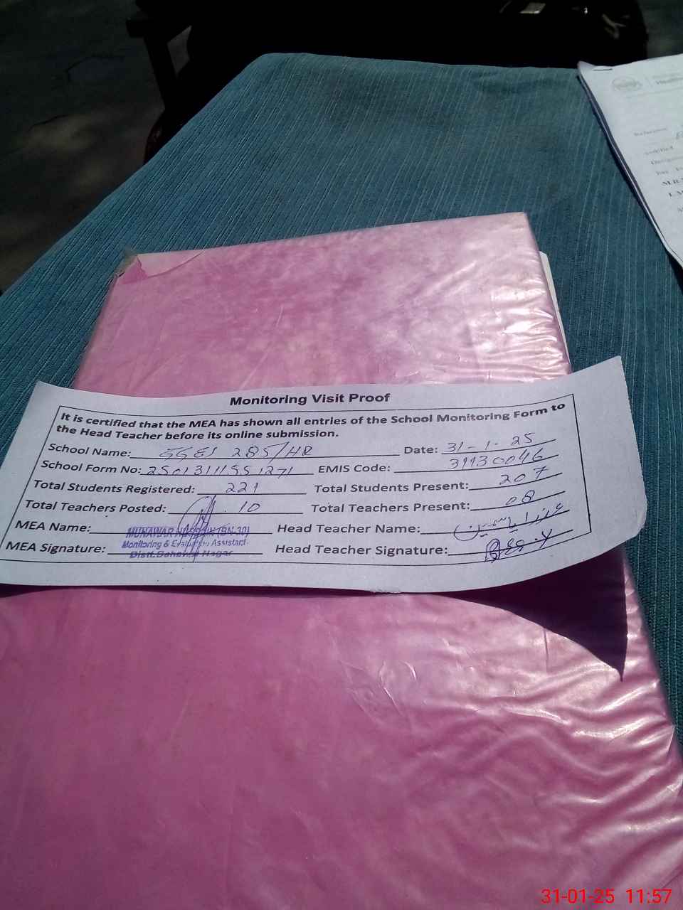 | EMIS Code: 31130046 | Name of School: GGES CHAK 285/HR | |||