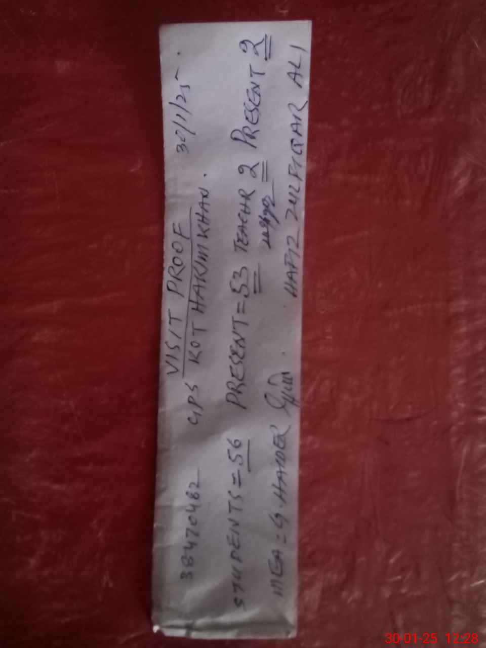 | Attendance Register | Head Teacher | MEA with School | Visit Proof |
