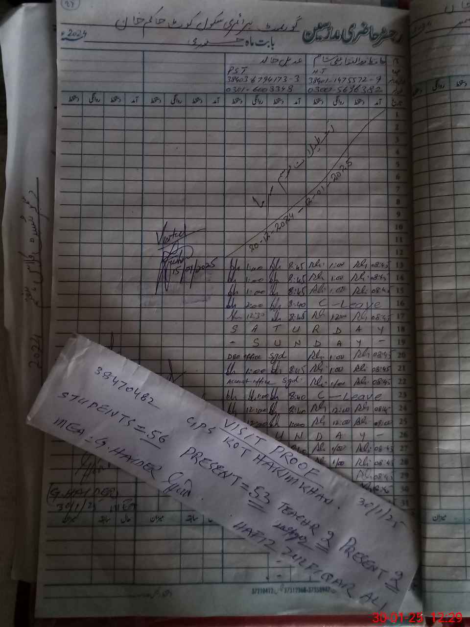 | Name: ZU**** AL**** Designation: (School Headmaster's/Headmistress's) PST Phone/Cell Number: 03**** |