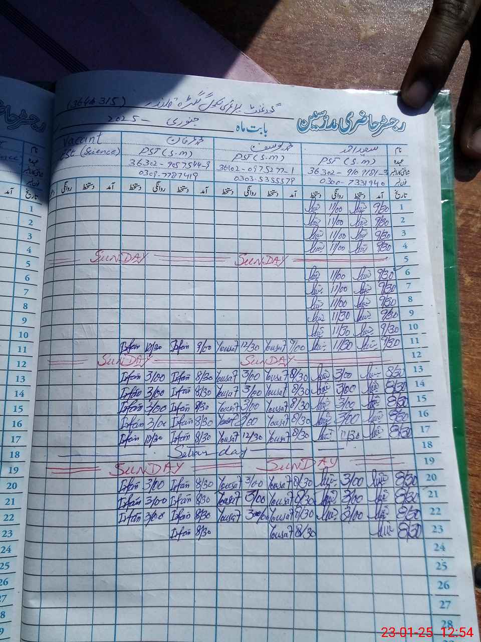 | Name: MU**** NA**** Designation: (School Headmaster's/Headmistress's) EST Phone/Cell Number: 03**** |