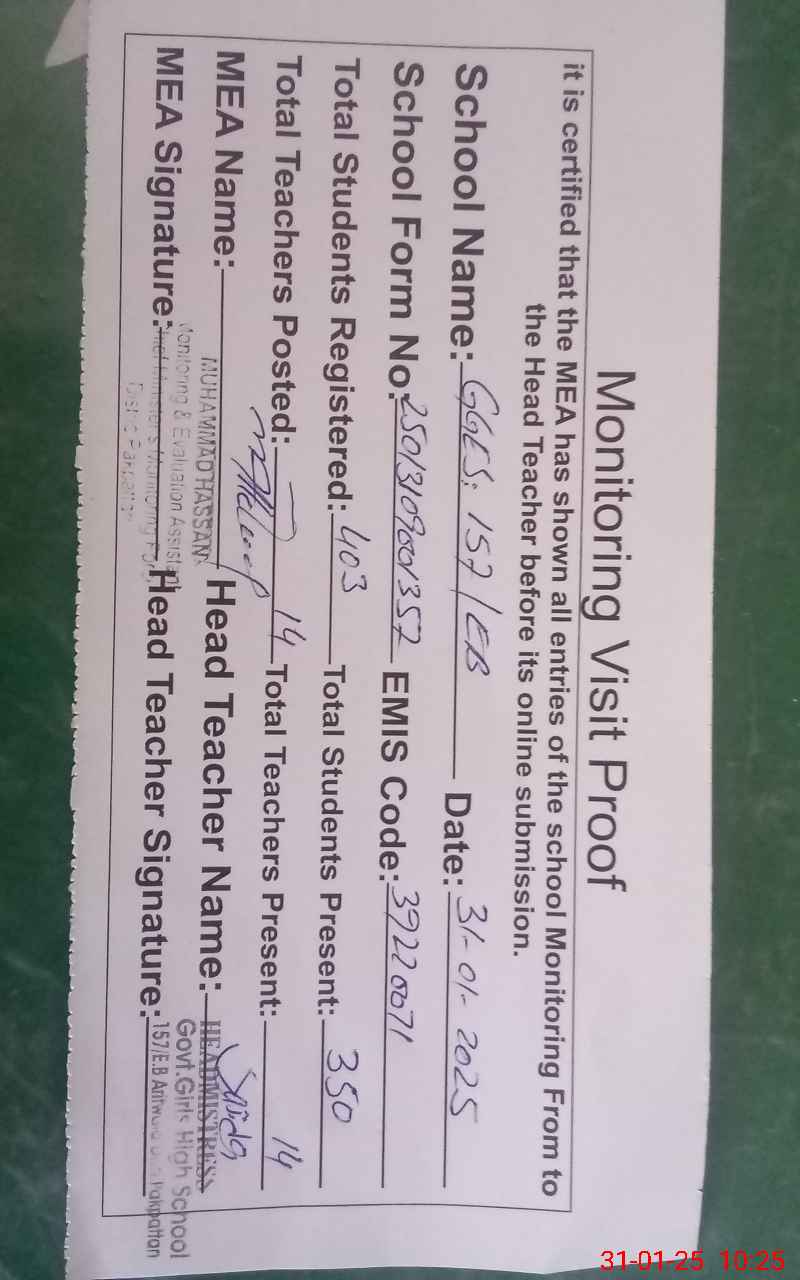 | EMIS Code: 39220071 | Name of School: GGHS CHAK NO. 157 EB | |||