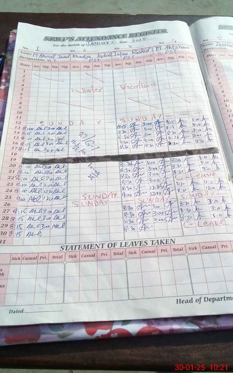 | Name: Mu**** Ak**** Ja**** Kh**** Designation: (School Headmaster's/Headmistress's) PST Phone/Cell Number: 03**** |