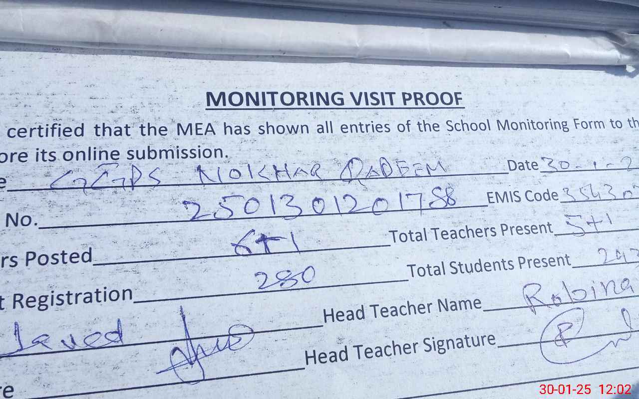 | Attendance Register | Head Teacher | MEA with School | Visit Proof |