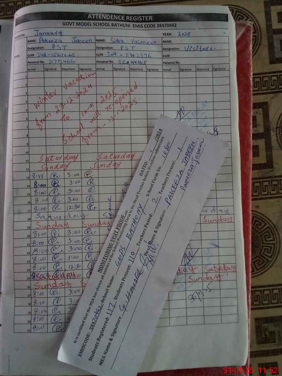 | Name: PA**** JA**** Designation: (School Headmaster's/Headmistress's) PST Phone/Cell Number: 03**** |